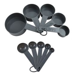 Juego de tazas y cucharas medidoras de plástico, herramientas de medición para hornear grises de 10 piezas con marcas graduadas
