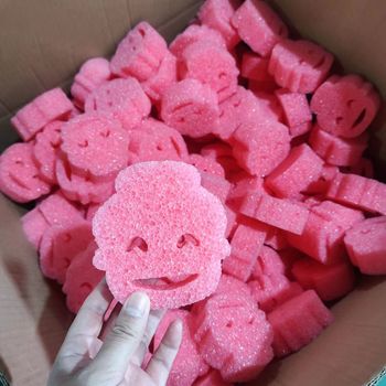 Caja de color de fábrica, esponja de cara sonriente para fregar, para lavado de cocina, paquete personalizado de 3 uds., Control de temperatura de limpieza profunda sin arañazos