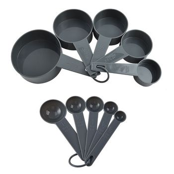Ensemble de tasses et cuillères à mesurer en plastique, outils de mesure de cuisson gris 10 pièces avec marquages gradués